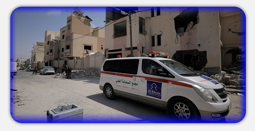 بالإضافة إلى ذلك سلمت الخير 7 سيارات إسعاف للدفاع المدني والمستشفيات، للمساعدة في نقل الشهداء والجرحى وتقديم الرعاية الأولية لهم، ومن جهة أخرى فتحت مستشفى الخير أبوابها لاستقبال الجرحى وتقديم الرعاية الصحية اللازمة لهم، بالتعاون مع وزارة الصحة الفلسطينية.