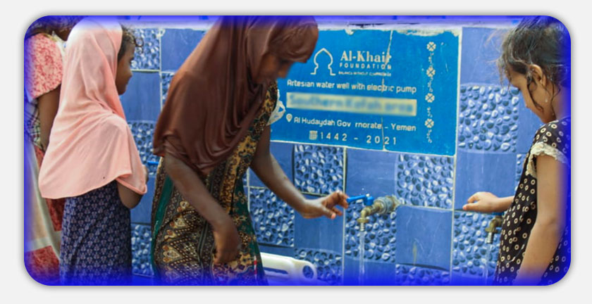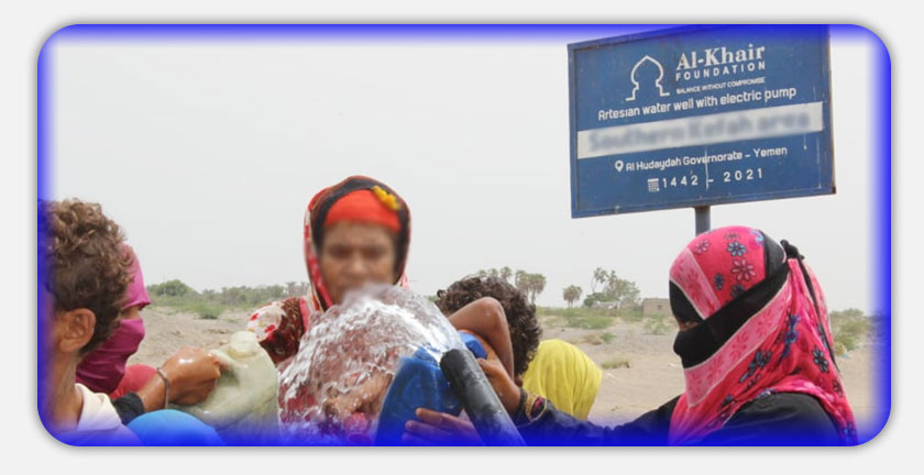 تعمل مؤسسة الخير وضمن اهتمامها بمشروعات إصحاح المياه في الأماكن الفقيرة والمهمشة، على تزويد سكان مناطق الريف في اليمن باحتياجاتهم من المياه وتحقيق الأمن المائي عبر حفر آبار مياه ارتوازية تُحسن من فرص الوصول للمياه.