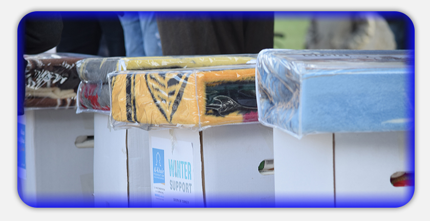 وشملت الحملة على توزيع الطرود الغذائية، و كسوة الشتاء على الأطفال، بالإضافة لمستلزمات التدفئة الأخرى كالبطانيات والفحم.