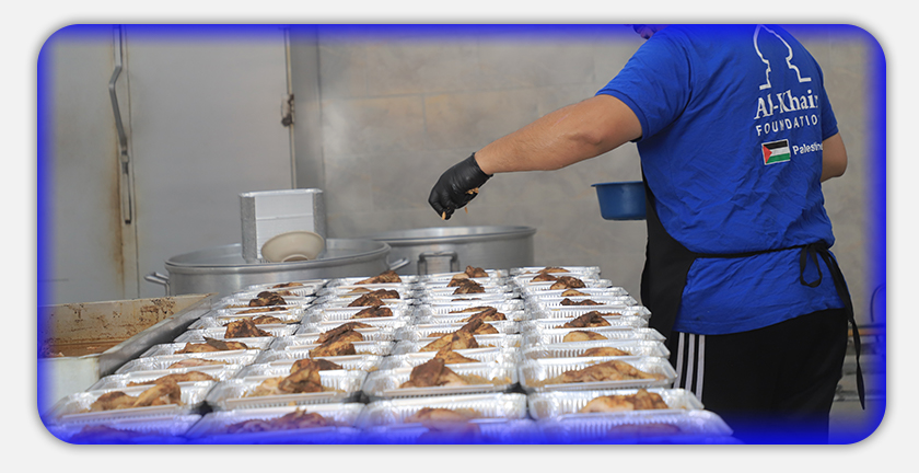 تُدرك مؤسسة الخير أهمية الغذاء كضرورة قصوى خلال فترات النزاع لأجل ذلك تكون الأولوية دائماً توفير المواد الغذائية للأسر المتضررة والأشد حاجة، خلال حملة كن عوناً لغزة في أغسطس 2022م وفرت الخير وعلى مدار عدة أيام وجبات الغذاء الساخنة لمئات الأسر، كم قدمت سلال غذائية لأكثر من 1000 أسرة في قطاع غزة بقيمة إجمالية تجاوزت 50000 دولار أمريكي.