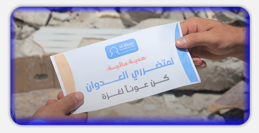 كإجراء عاجل لتخفيف العبء عن المتضررين بشكل مباشر من العدوان قدمت مؤسسة الخير مساعدات نقدية لمئات الأسر، فقد حصلت 25 عائلة على مساعدة مالية عاجلة بقيمة 2400 دولار أمريكي لكل عائلة، كما حصلت نحو 250 عائلة على مبالغ متفاوتة تتراوح بين 100 و 500 دولار أمريكي لكل عائلة.