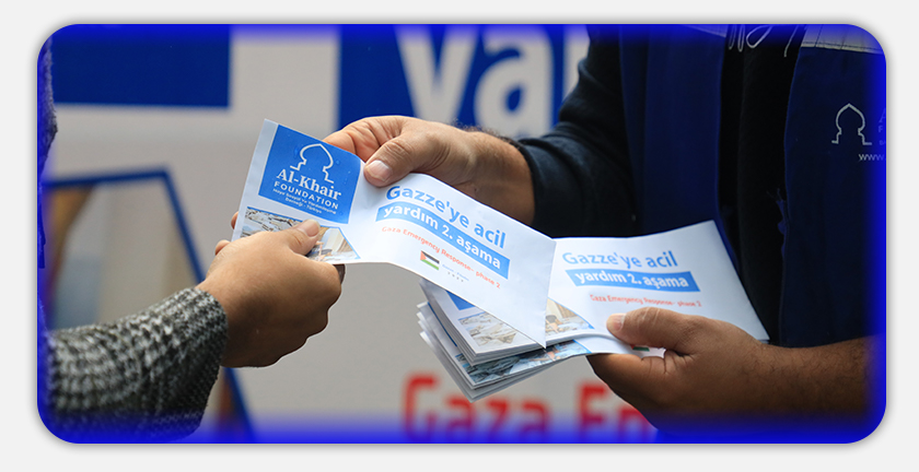 و تعمل مؤسسة الخير منذ عدة سنوات و بشكل مستمر على مساعدة السكان في فلسطين، وخصوصاً قطاع غزة المحاصر من خلال عدة برامج إغاثية وتنموية منها "ترميم البيوت، وتوزيع السلال الغذائية، وكفالة الأيتام، وإنشاء وصيانة الآبار ومحطات تحلية المياه، ودعم الطلبة في المدارس والجامعات".