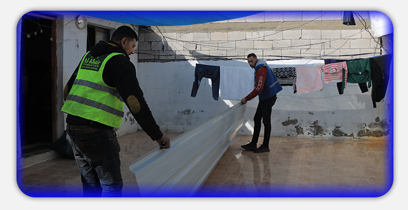 كما قام فريقنا في غزة بتنفيذ المرحلة الأولى من مشروع " ترميم أسقف المنازل المهترئة "، الذي تسعى من خلاله مؤسسة الخير لترميم أسقف 50 منزلاً تضرر بفعل المنخفض الجوي ويحتاج لإصلاحات عاجلة جداً في الأسقف.