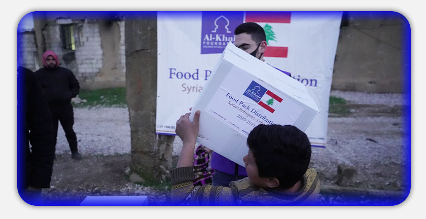 وزعت مؤسسة الخير – مكتب الشرق الأوسط وبتمويل كريم من مؤسسة أغصان الأمل الدفعة الشهرية من الطرود الغذائية والحزم الشتوية لمخيمات اللاجئين السوريين والفلسطينيين في البقاع اللبناني.