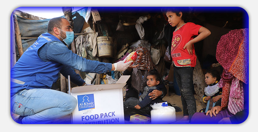 ضمن جهود مؤسسة الخير - مكتب الشرق الأوسط للقضاء على الجوع والحد من الفقر والمساهمة في توفير الأمن الغذائي للعائلات الأشد فقراً في قطاع غزة، قامت مؤسسة الخير بتوزيع مئات الطرود الغذائية على العائلات الفقيرة في قطاع غزة.