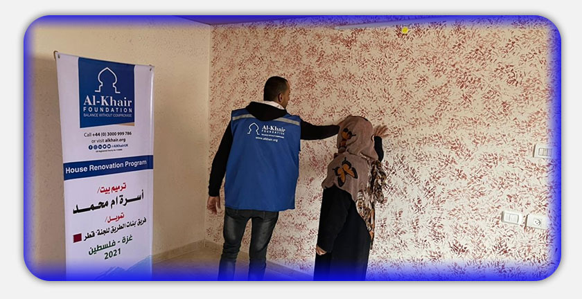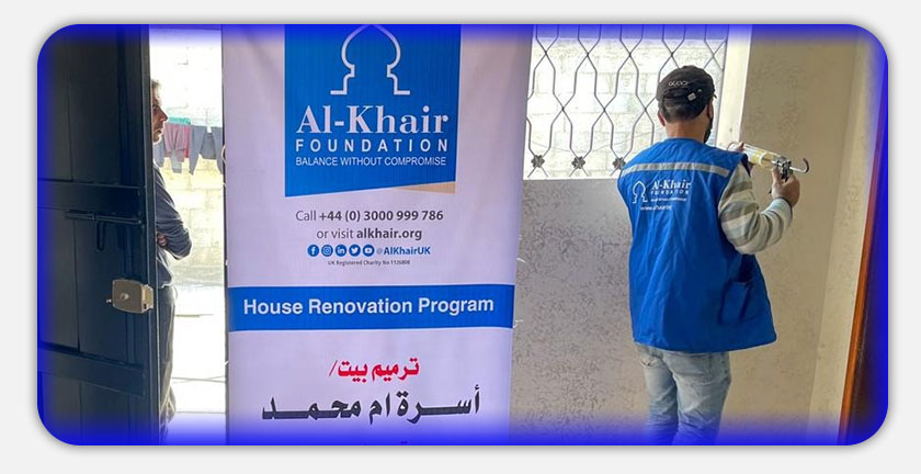 وتعتبر مؤسسة الخير مشروع ترميم البيوت من المشاريع ذات الأولوية لديها، وذلك ضمن جهودها في مكافحة الفقر، وإيجاد المأوى المناسب للأسر الفقيرة ومساعدتها في خلق واقع أفضل، حيث تعمل على ترميم ما لا يقل عن 50 منزل سنوياً، على الرغم من التحديات الكثيرة التي تواجهها