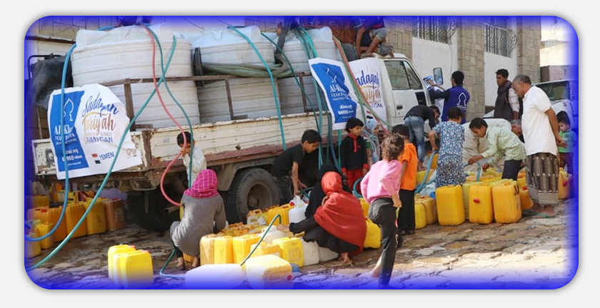 أصبحت اليمن تعيش كارثة إنسانية وبيئية، في بلد يعاني من فقر مزمن وحرب مدمرة، فأصبحت فرص الحصول على المياه الصالحة للشرب معدومة تمامًا، حيث تنفد المياه بسبب الاستغلال المفرط لطبقات المياه الجوفية والتوسع السكاني وتغير المناخ، ليفتقر نصف الشعب اليمني إلى مياه الشرب النقيّة وخدمات الصرف الصحي ( حوالي 15 مليون يمني).