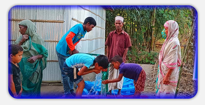 بسبب الأزمة الإنسانية في بورما نزح مئات الآلاف منهم نحو بنجلادش وسكنوا في مخيمات تفتقر لأبسط المقومات الإنسانية، ولا شك أن المياه تمثل حاجة أساسية للإنسان لكن الواقع ليس كذلك في مخيمات اللاجئين الروهنيجا في بنجلادش، حيث يقيم أكثر من 900,000 شخصٍ من اللاجئين الروهينغا في 34 موقعاً مختلفاً في كوكس بازار ببنغلاديش. وترافقت جهود توفير المياه الصالحة للشرب في المناطق المكتظة مع تحدياتٍ كبيرة بالنسبة للمنظمات الإنسانية، حيث تطلبت حفر آبارٍ أنبوبيةٍ عميقة وإنشاء شبكاتٍ للمياه بما يتضمن تركيب الأنابيب وبناء السدود وحفر القنوات وتنصيب منظومتي التنقية والمعالجة بالكلور.